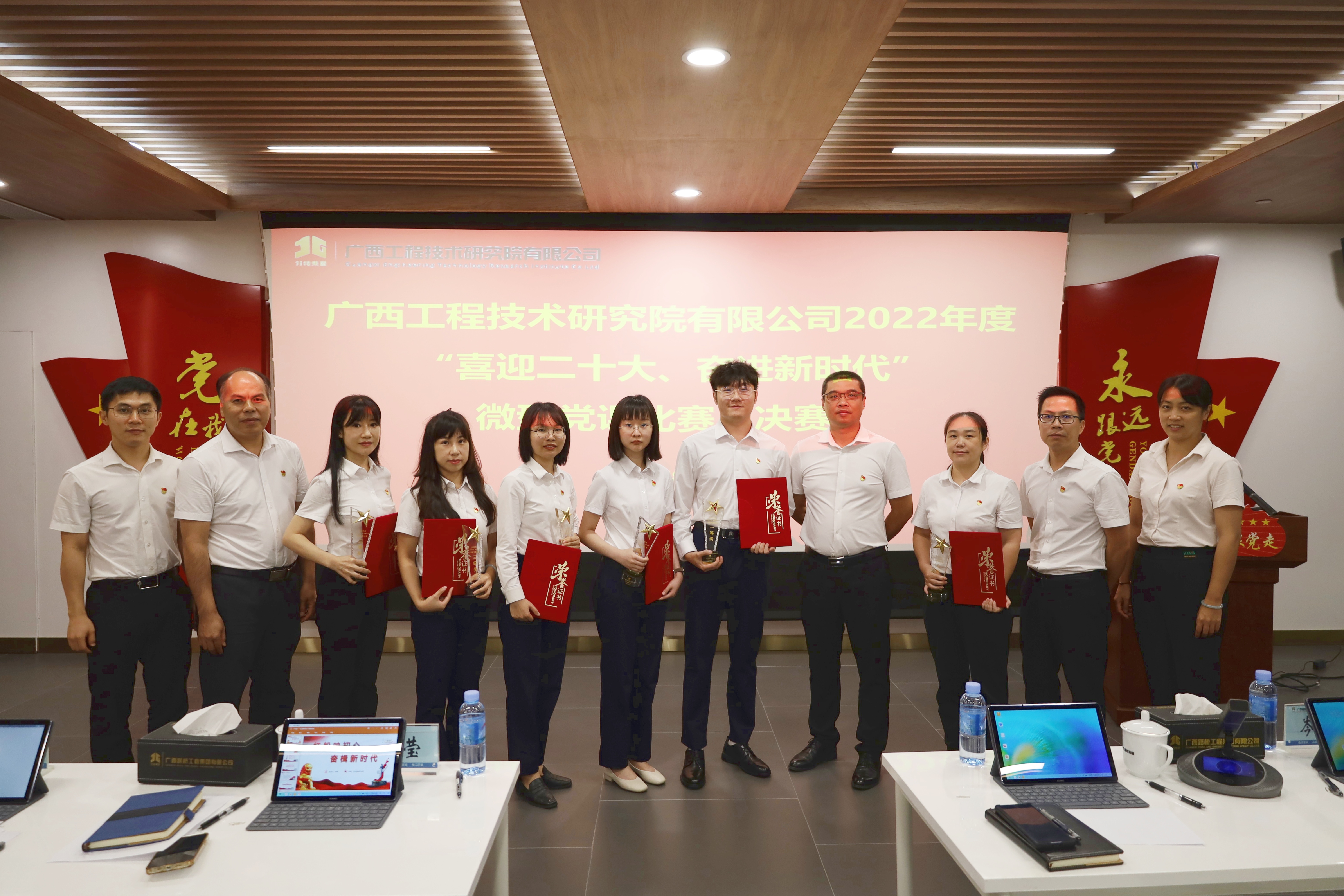 2022年8月16日,工程院2022年度“喜迎二十大、奋进新时代”微型党课比赛决赛在广西路桥集团新时代文明实践所顺利举行,来自工程院第一党支部的3名选手、第二党支部的4名选手参加比赛,为观众带来一堂“接着地气”又“冒着热气”的“精神大餐”。