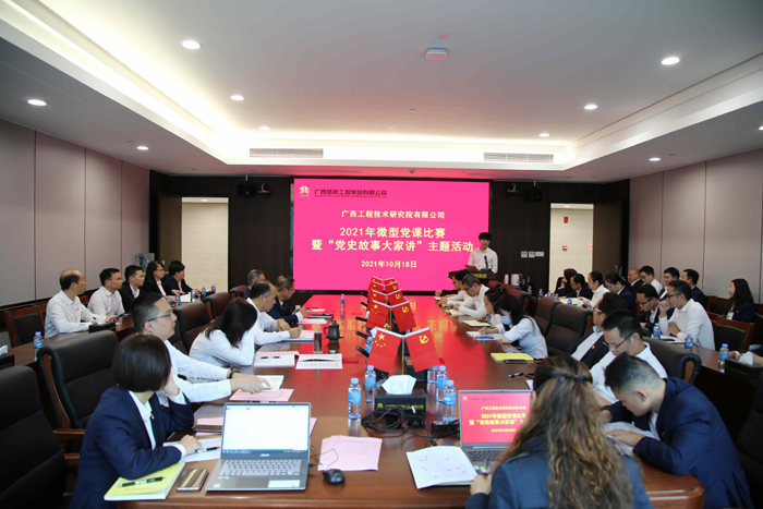 2021年10月18日,工程院举办2021年微型党课比赛暨“党史故事大家讲”活动。工程院党总支副书记、工会主席弄庆安,副总经理粱东升,各党支部书记,各部门正副职和在邕党员参加活动。