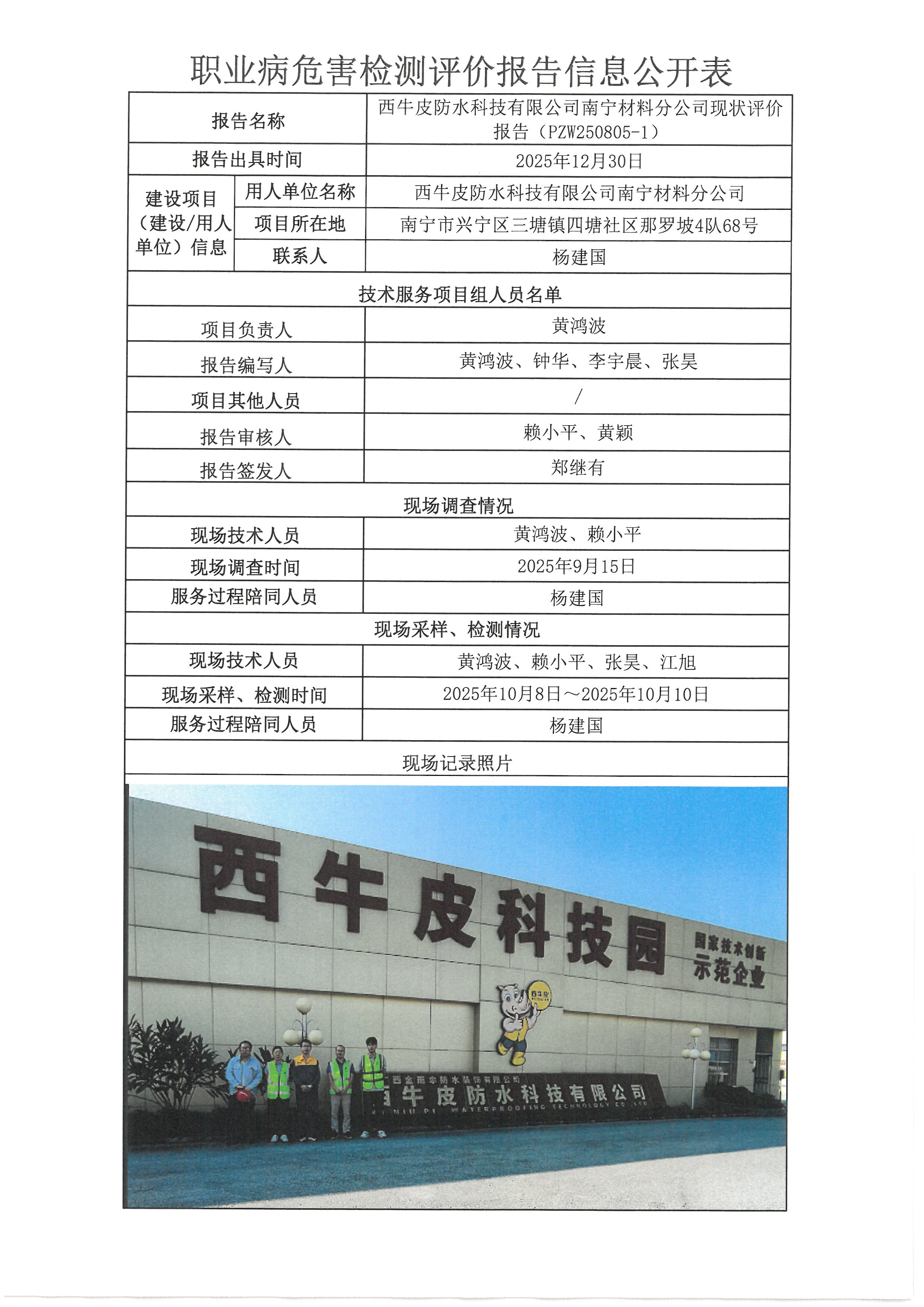 西牛皮防水科技有限公司南宁材料分公司现状评价报告PZW250805-1