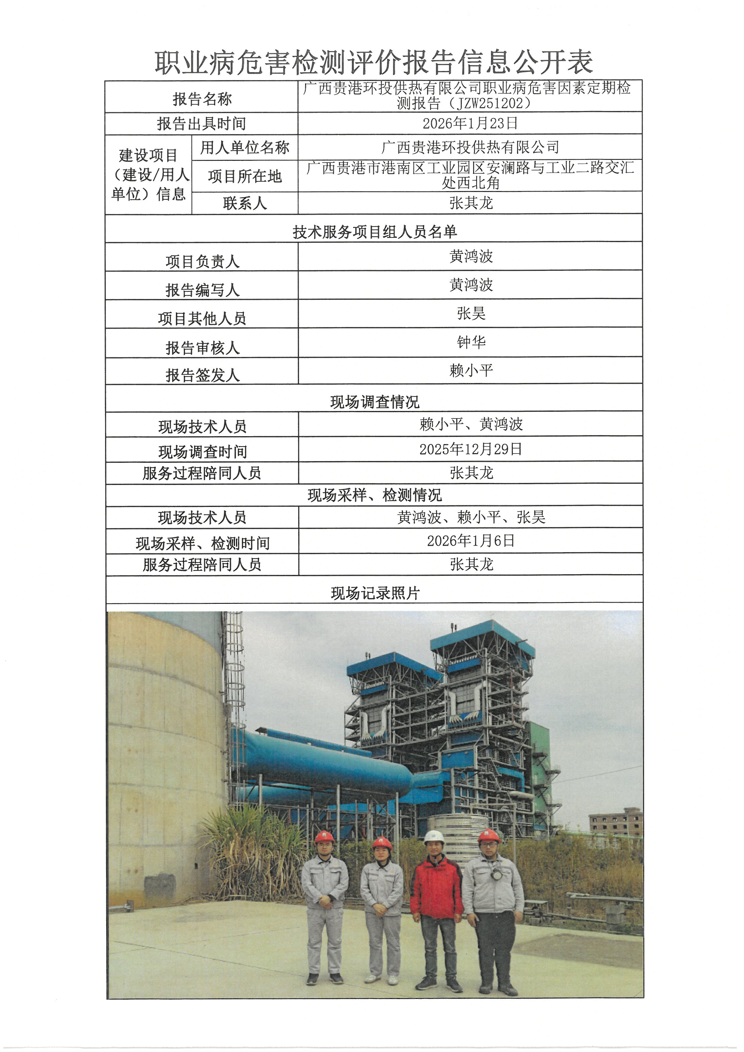 广西贵港环投供热有限公司职业病危害因素定期检测报告(JZW251202)
