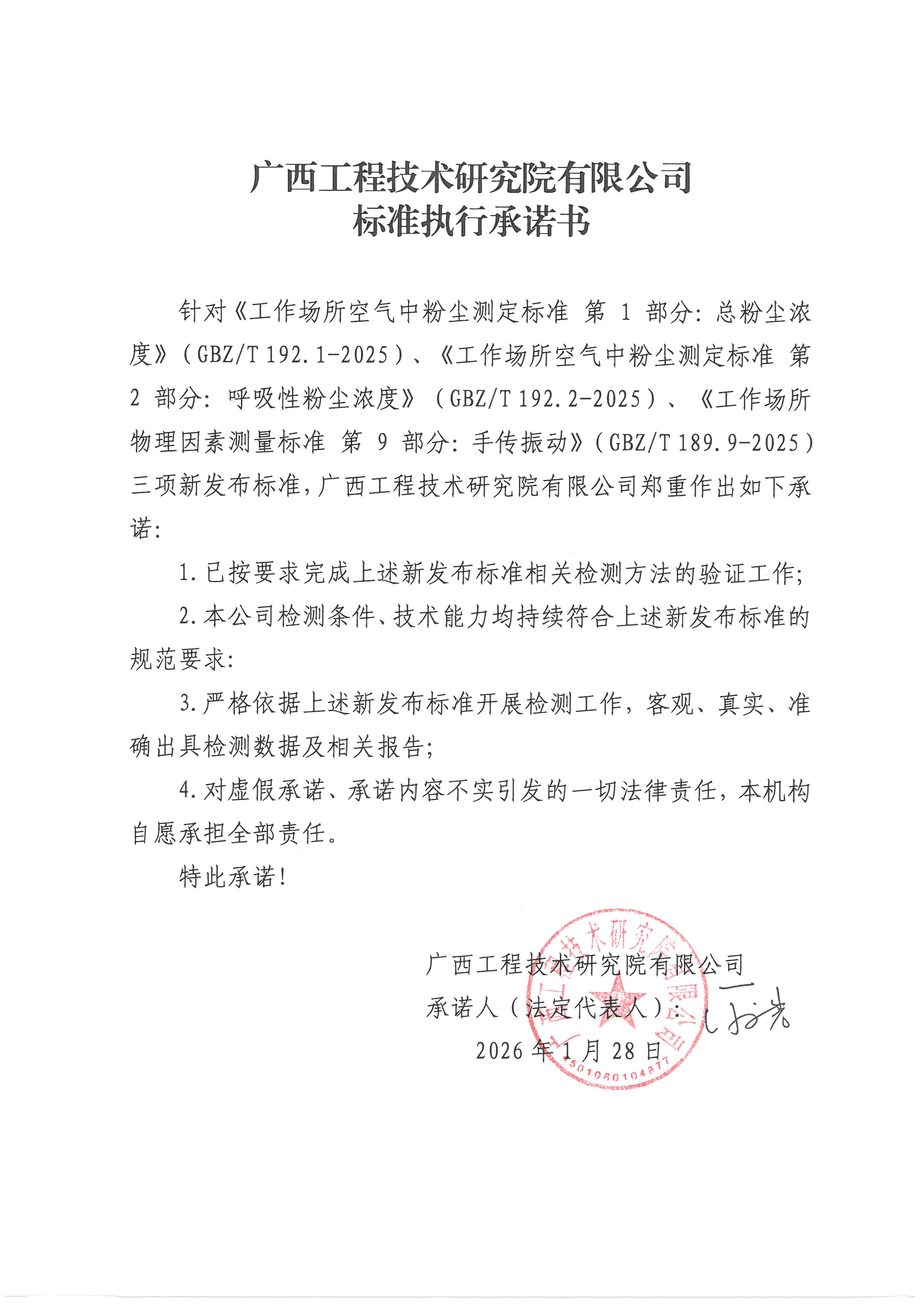 广西工程技术研究院有限公司关于检测标准变更承诺书